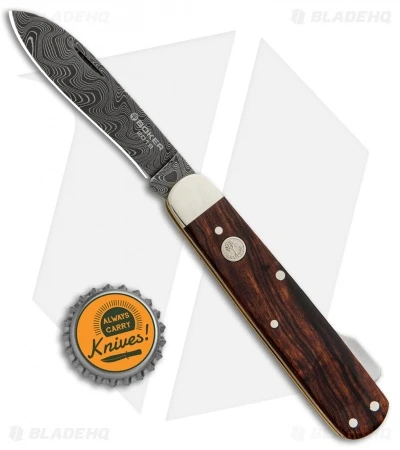 This Boker Annual Damascus 2018 Collector’s knife is outfitted with a rich desert ironwood handle and a Chad Nichols “Boomerang” damascus steel blade.