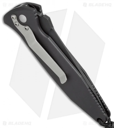 - Black-finished, partially serrated tanto blade.