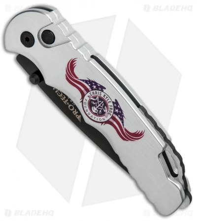 The Tactical Response 4 is a manual knife for those that prefer a non-automatic folder. The TR-4 features a 4″ black DLC finished steel blade with a plain edge. The ergonomic handle is polished 6061-T-6 aluminum with the Chris Kyle Frog Foundation logo. It comes equipped with a pocket clip set for tip-up, right hand carry.
