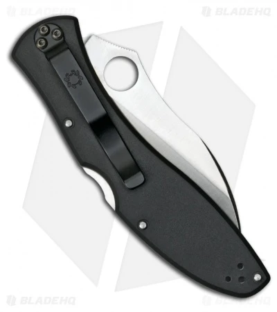 Spyderco’s Centofante-4 folder represents the evolutionary refinement of previous Centofante/Spyderco collaborations. Its thin-profiled fiberglass reinforced nylon (FRN) handle is furrowed with grip enhancing channels and inset with a Palladium silver Spyderco logo bug. Adding security and ease of deployment, the back-lock is positioned mid-spine. Cut out of the locking lever is a David Boye Dent, diminishing the feasibility of gripping the knife handle tightly enough while cutting to unintentionally release the lock. The Centofante4 features a Wharncliffe VG-10 steel blade that has both a hollow-grind and a non-sharpened spine swedge-grind. Prominently rising above the Spyderco Round Hole is a crest for the thumb keeping it in controlled contact with the blade. Right-hand steel pocket clip positions the folder for tip-up/tip-down carry. Nested steel liner in the handle creates rigidity and a foundation for the clip’s screw attachment.