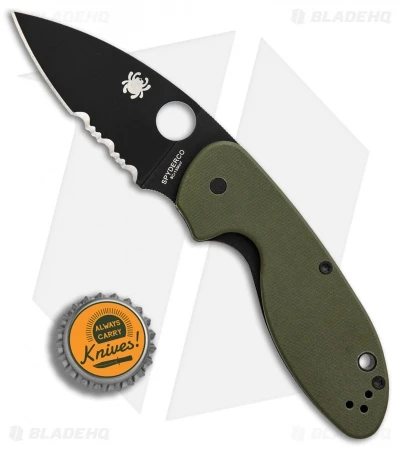 This Efficient model has a partially serrated black blade and a green G-10 handle.