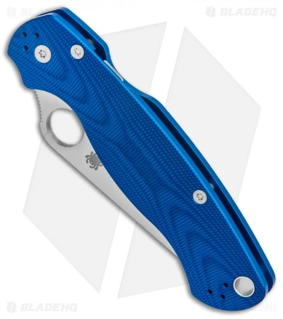 This Blade HQ Exclusive Spyderco Paramilitary 2 features blue anodized aluminum scales for its handle and a satin finished blade made of CTS BD1N blade steel.