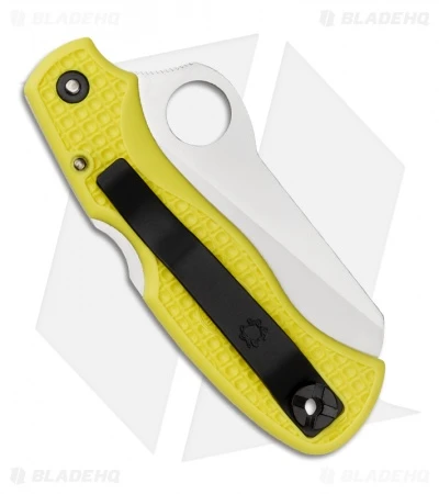 The Spyderco Saver Salt is a smaller sized rescue knife for any hand size. It is designed specifically for seafarers, rescue workers, EMT’s, ranchers and anyone cutting around flesh in an emergency. The Saver Salt features H-1* steel, a precipitation-hardened steel containing nitrogen instead of carbon, which cannot rust. The edge retention compares to other high carbon knife steels but its most distinguishable characteristic is that its nitrogen based as opposed to carbon based. The flat saber-ground blade offers remarkable cutting performance in and around fresh and saltwater. The textured yellow fiberglass reinforced nylon (FRN) handle features Volcano Grip and includes a lanyard hole. Comes with a reversible tip-up pocket clip.